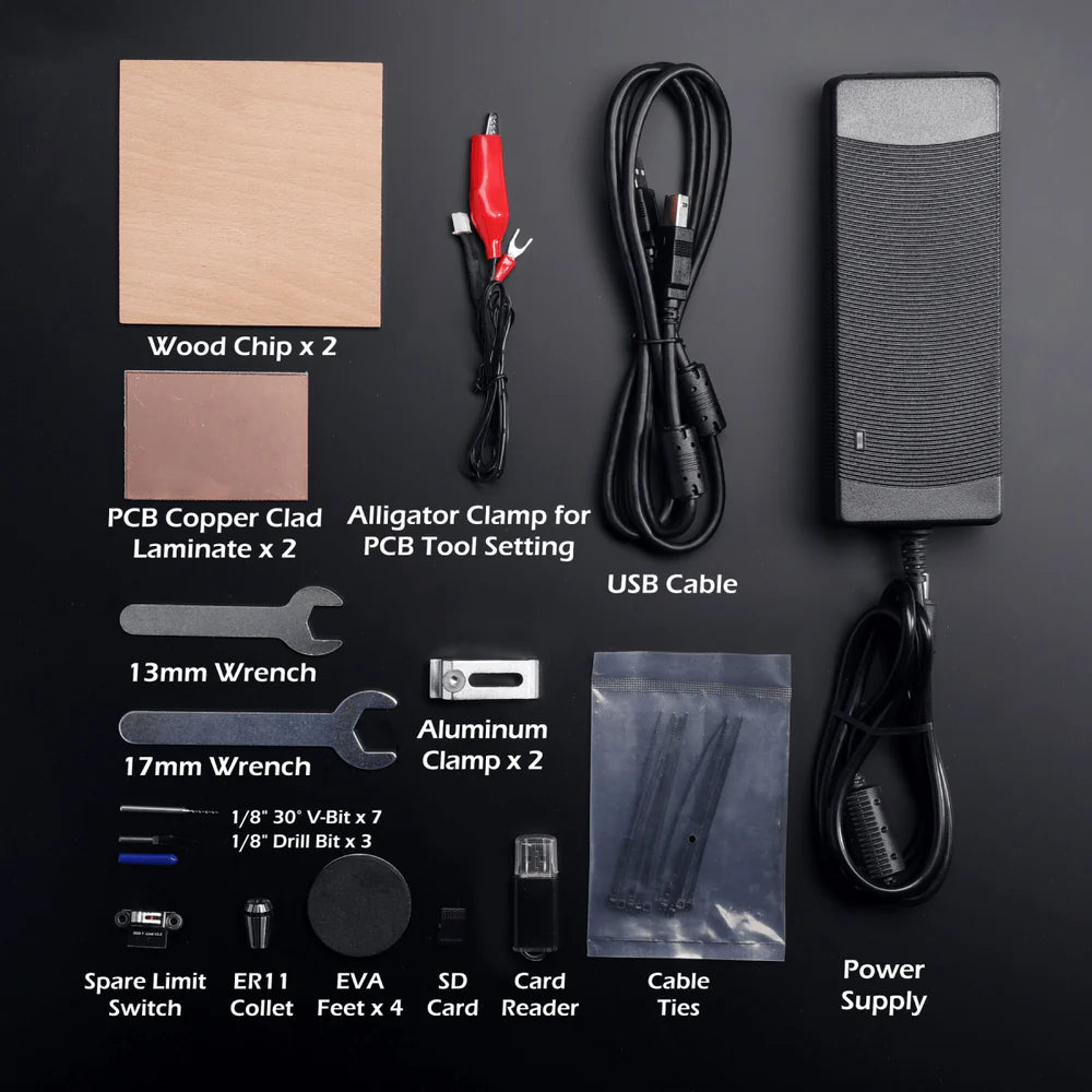 Supported Materials: Wood, MDF, bamboo, PCB, aluminum, copper, brass, resin, nylon, carbon fiber, acrylic