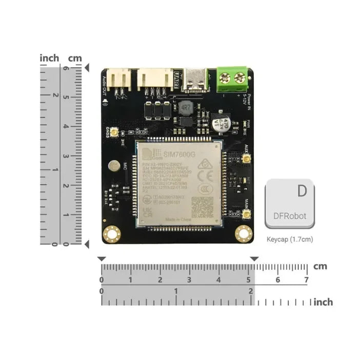 The DFRobot Gravity: High-Speed CAT4 SIM7600G-H module is a powerful 4G LTE CAT4 wireless communication device with integrated GNSS positioning (GPS, BD, GLONASS) designed for global use. Supporting a wide range of LTE, WCDMA, and GSM bands, it ensures worldwide network compatibility. Equipped with USB and UART interfaces, this module easily connects with Arduino, Raspberry Pi, and other single-board computers as a 4G network card. It supports multiple protocols like TCP/IP, HTTP, FTP, and features voice, SMS, and data capabilities, making it ideal for IoT, logistics, and remote monitoring applications.