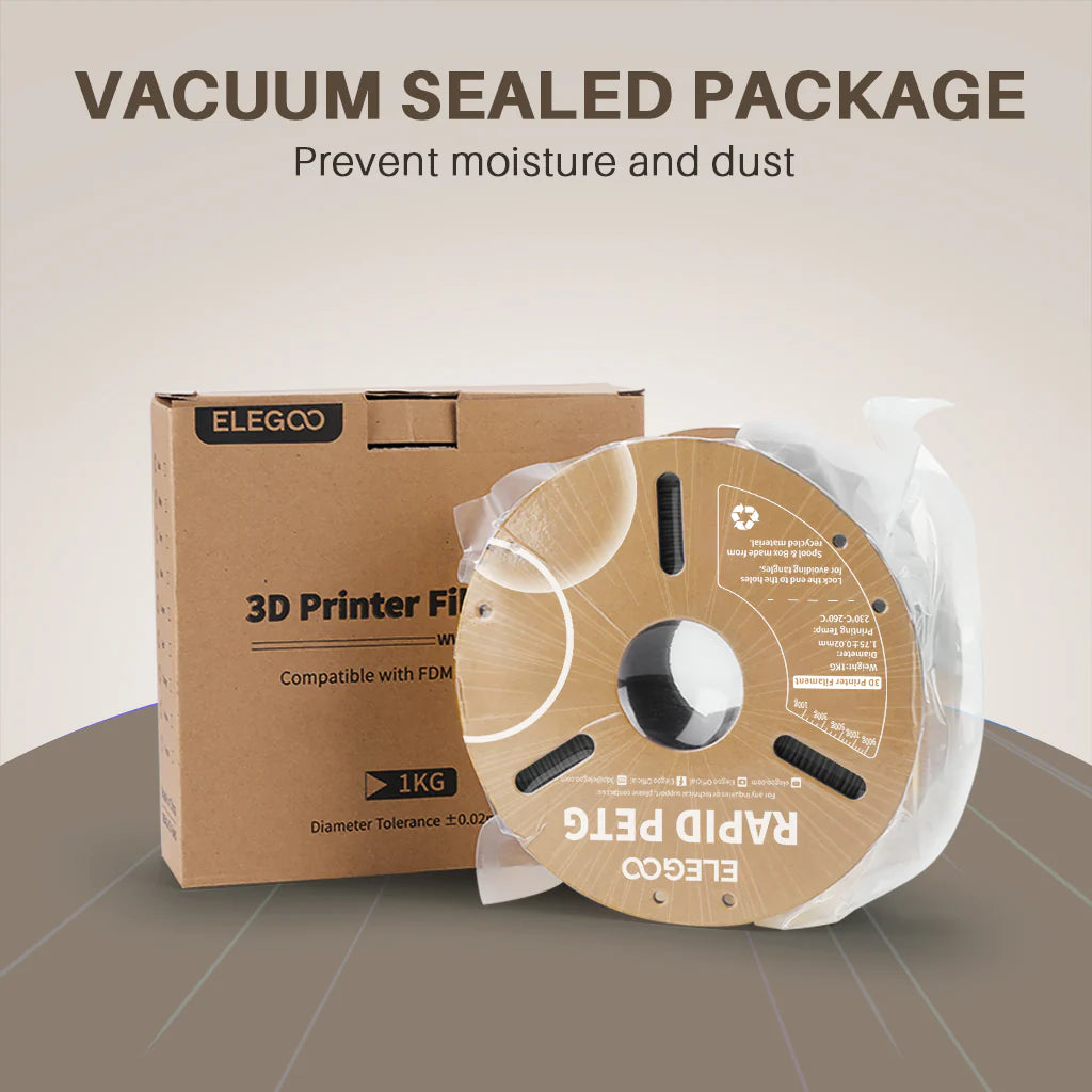The ELEGOO Rapid PETG Black Filament offers the perfect blend of speed, strength, and printability. Its high mechanical performance, excellent environmental resistance, and broad printer compatibility make it a dependable choice for both hobbyists and professionals seeking reliable PETG results.