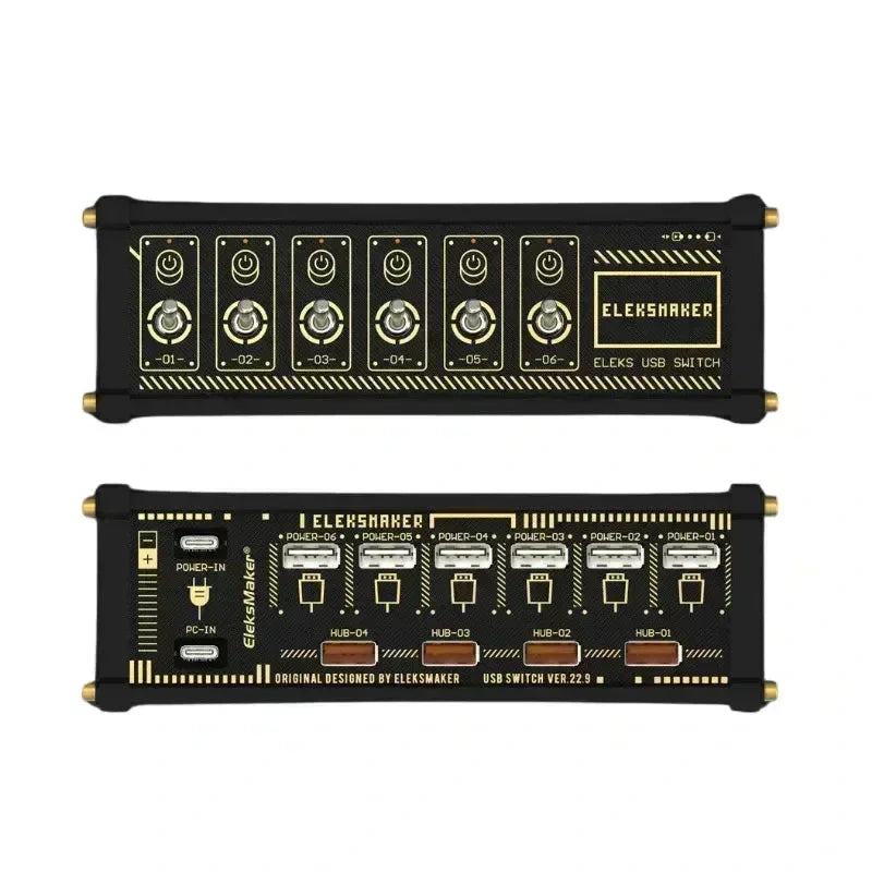 ⚙️ Featuring six metal button switches controlling six USB power channels