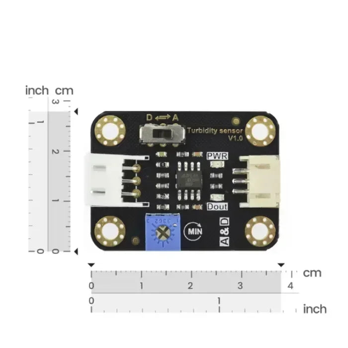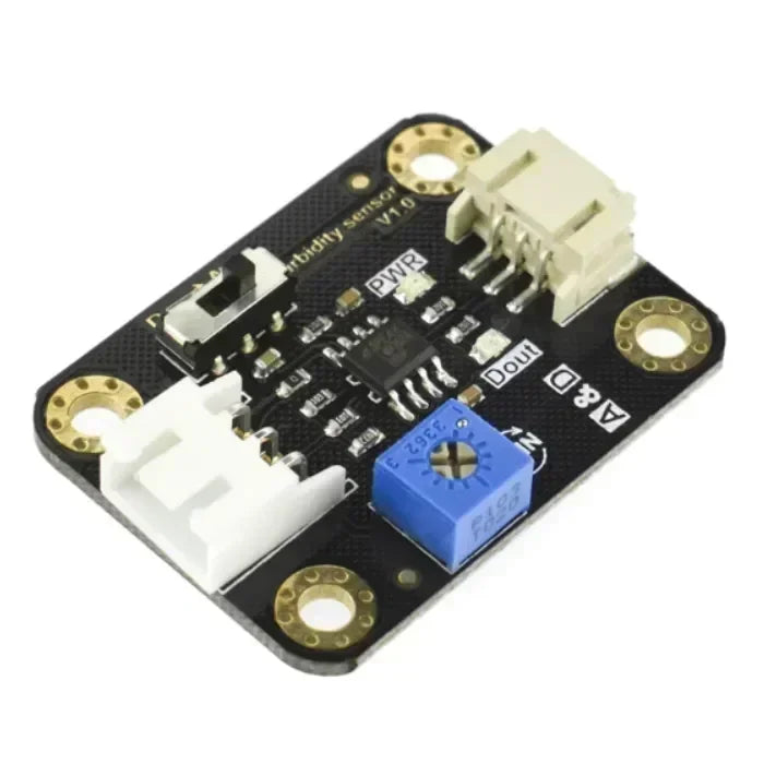 The Gravity: Analog Turbidity Sensor for Arduino (SEN0189) is a high-performance sensor designed to detect water turbidity by measuring light transmittance and scattering caused by suspended particles in water. As the concentration of total suspended solids (TSS) increases, the turbidity level rises—allowing this sensor to provide real-time feedback on water quality.