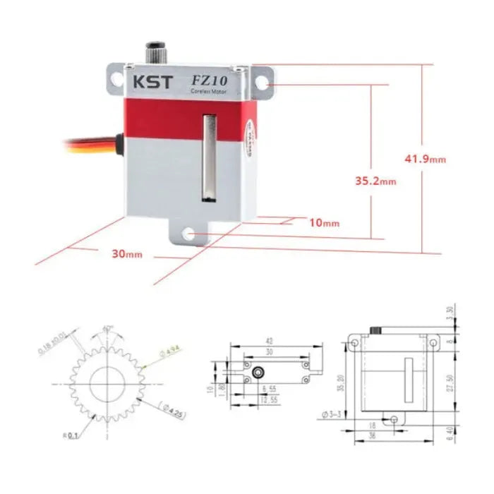 The KST FZ10 is a high-performance digital metal gear servo designed for precision applications in remote-controlled (RC) jets and gliders. It combines advanced technology with robust construction to deliver exceptional torque and speed.