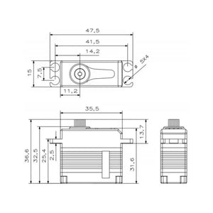 X15-908 is a high performance servo of the 15mm class. Due to its positioning speed of 0.08s/60° and torque of 9.2Kgf.cm at 8.4 Volt, this servo is perfectly suitable for middle-class helicopters, but also for planes, where power and a fast rudder reaction are required. It is perfect for helicopter team- and competition pilots and for use in hard competitions.