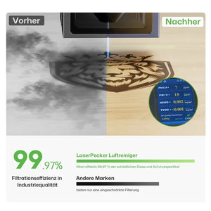 The LaserPecker Desktop Air Purifier is a compact, high performance air cleaning unit created specifically for laser engraving workspaces. Designed to pair with all LP Series and LX Series engravers and their compatible safety covers, it helps clear fumes, smoke and fine dust generated during cutting and engraving so your environment stays cleaner, safer and more comfortable.