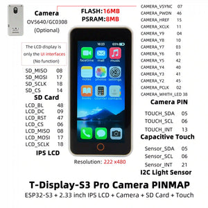 LILYGO T-Display S3 Pro ESP32-S3 2.33" Touchscreen OTG Camera