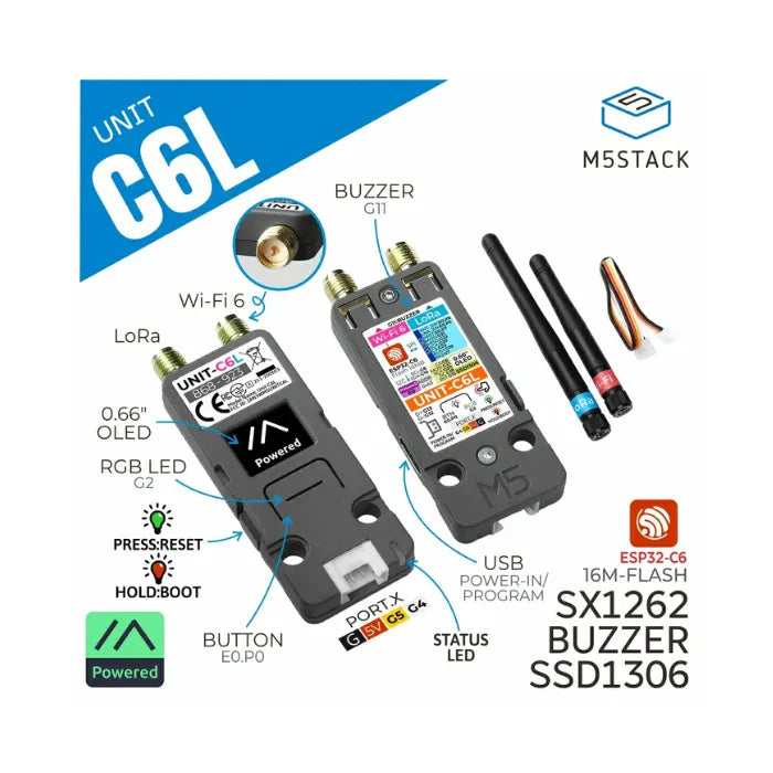 M5Stack C6L Unit for Meshtastic (SX1262, ESP32-C6)