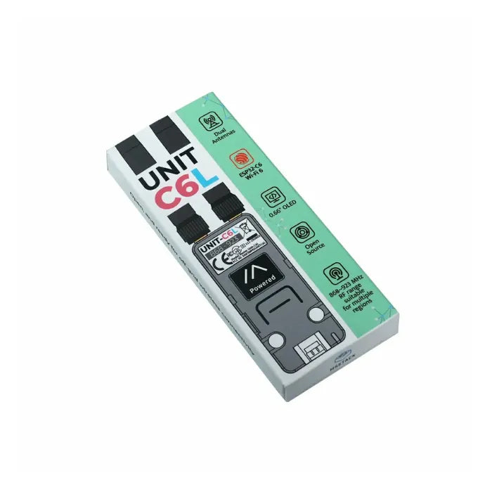 Unit C6L is a compact wireless communication module based on the Stamp C6LoRa, powered by the ESP32-C6 RISC-V processor. It integrates an SX1262 transceiver with RF switching circuitry, covering 868 ~ 923 MHz for stable long-range connectivity. π‘