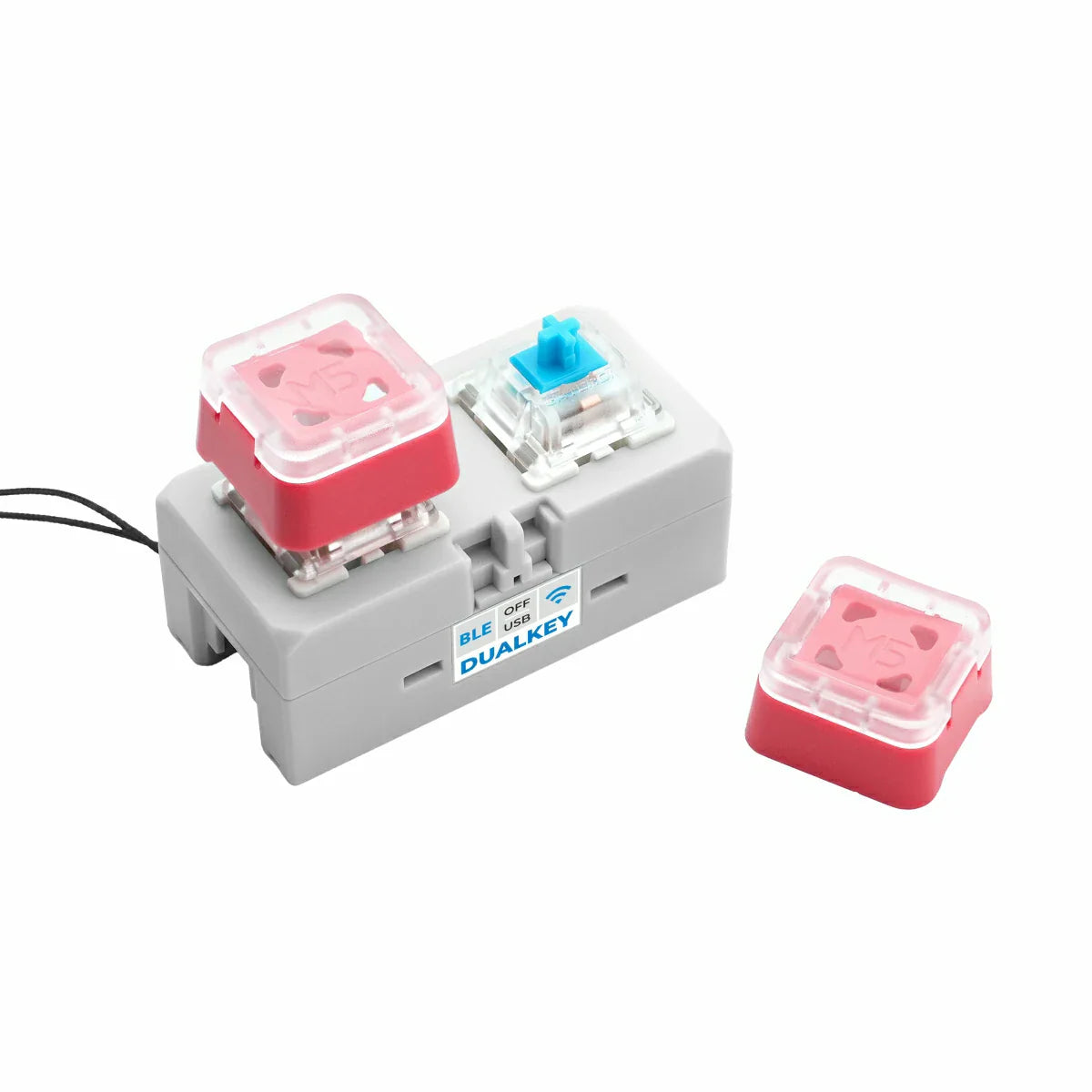🔗 Chain DualKey — Smart Control in a Compact Form Chain DualKey is a programmable dual-key input development board powered by the ESP32-S3FN8 main control chip. On the front, it features 2 hot-swappable blue mechanical switches 🔵 and 2 programmable RGB LEDs 🌈 — delivering tactile feedback and vibrant interaction.