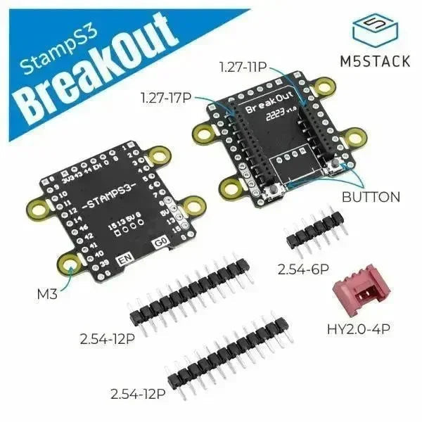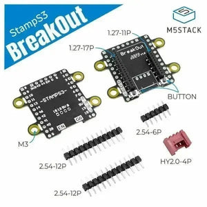 The StampS3Breakout Board is the perfect expansion companion designed exclusively for the M5StampS3. It simplifies connectivity by converting the 1.27 mm pitch pin to a standard 2.54 mm pitch, making it effortless to connect with other devices and modules.