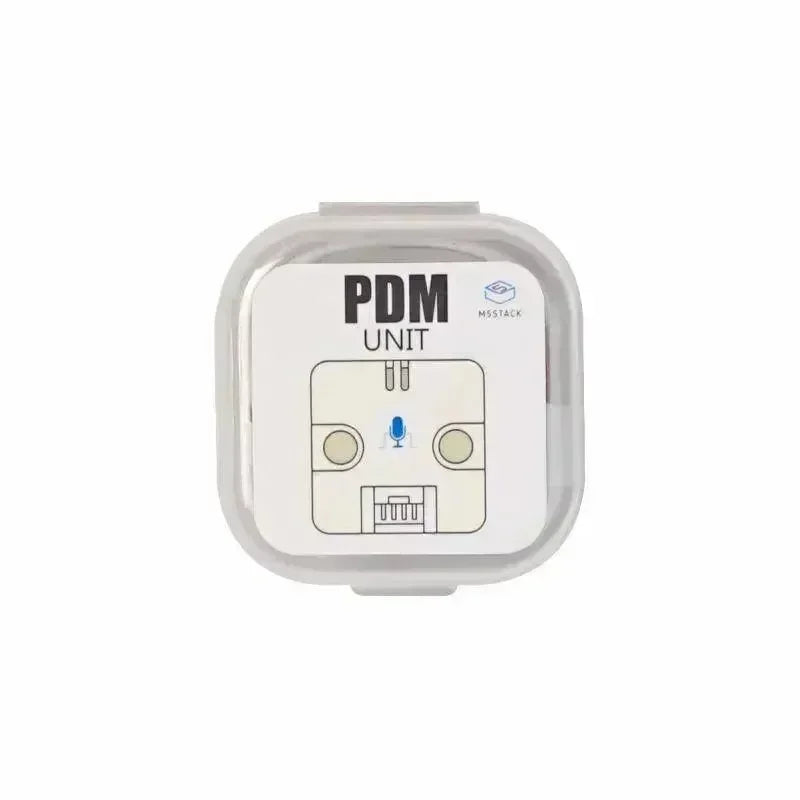 The PDM mini Unit is a digital MEMS silicon-based microphone that uses Pulse-Density Modulation (PDM) signaling for audio capture. Unlike traditional analog microphones, it outputs a digital bitstream, eliminating the need for external ADC conversion and making integration with DSPs and microcontrollers straightforward.