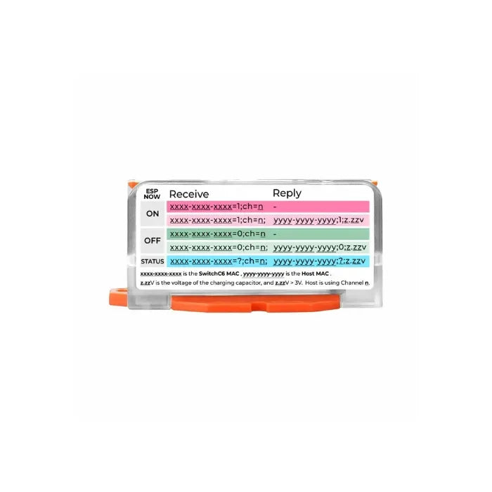 - Short press once: Toggle the switch state, then broadcast status information (own MAC address, channel, new switch state, capacitor voltage, etc.).