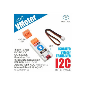 🔌 M5Stack Voltmeter Unit (ADS1115) is a high-precision voltage monitoring module designed for real-time measurement in embedded systems. At its core is the 16-bit ADS1115 ADC, communicating via the I2C protocol (address: 0x49), ideal for robotics, industrial control, and smart infrastructure.