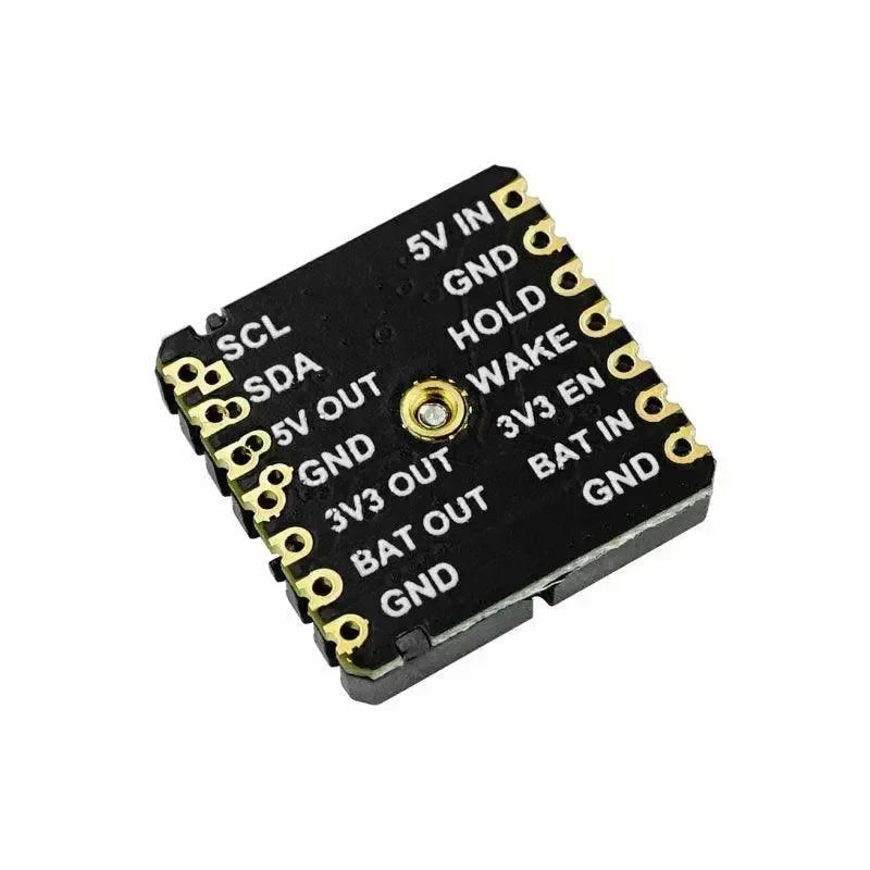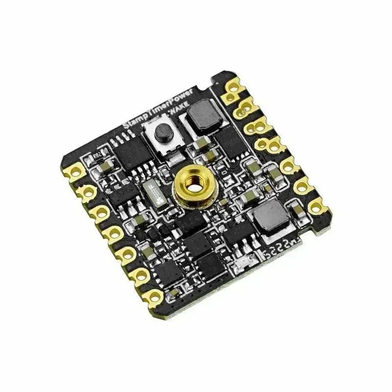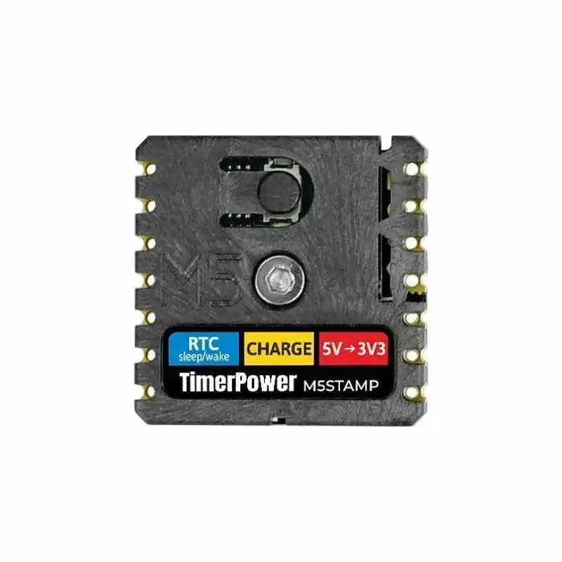 The Stamp Timer Power is a low-power power control module in the STAMP series package, designed for energy-efficient applications. It integrates RTC wake-up (BM8563), manual wake-up/sleep, RTC timing wake-up, battery charging, 5V boost output, and 3.3V DCDC output.