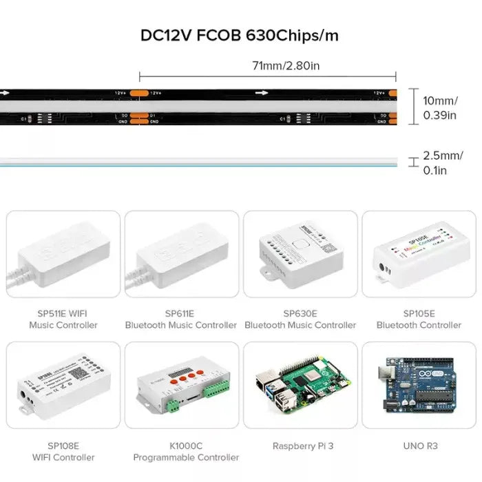 OpenELAB 24V FCOB WS2811 LED Light Strip RGB Full Color 630 LEDs