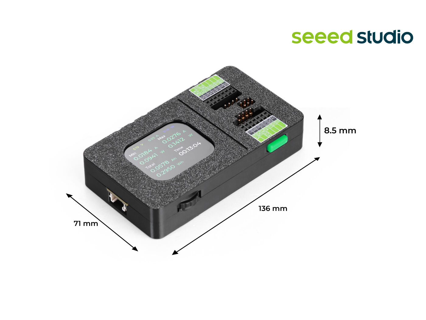 📉 Track power consumption down to μA levels with ⚡ three specialized measurement interfaces. 🔎 Monitor voltage/current readings, ultra‑low‑power states, and consumption patterns with ⛰️ peak/valley identification. 🧪 Each unit is factory‑calibrated for maximum accuracy (±10% @ 1–10 μA), ensuring 🔐 confident battery life validation and 💡 energy optimization. 🛠️ Works seamlessly with both standalone XIAO boards and complete XIAO‑based projects — ready to use straight out of the box 📦.