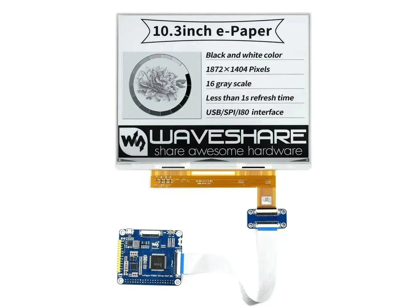 Waveshare 10.3 inch E-Ink Display 1872x1404 E-Paper with Hat