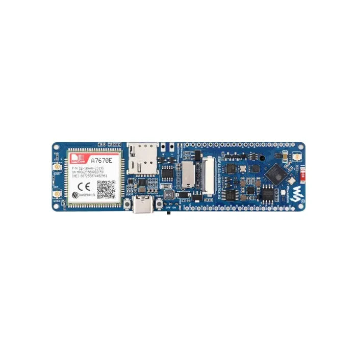 To enable mobile connectivity, the board is equipped with the A7670E Cat-1 4G module, supporting LTE and 2G networks, GNSS positioning (GPS, BeiDou, GLONASS), voice calls, and SMS. A USB switching IC and DIP switches allow seamless toggling between the ESP32 and A7670E USB interfaces, making it easy to connect to a PC for dial-up networking or module debugging.