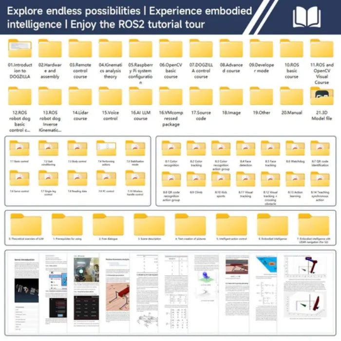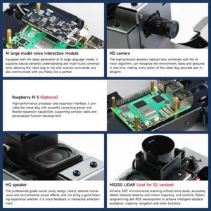 - Based on the AI larger model and AI voice recognition module, DOGZILLA can understands commands, and achieve related functions such as voice dialogue, scene perception, embodied intelligence, etc.