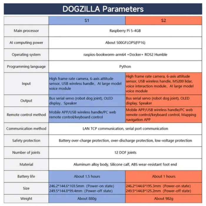 - Equipped with 12PCS high-precision servo motors, a safe and non-toxic aluminum alloy body, and a wide-angle camera. S2 has added lidar and voice interaction modules.