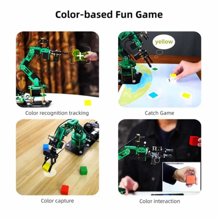 - Gesture recognition, color interaction, visual positioning, garbage sorting, catch game, face tracking, and blocks stack and others AI vision game play.