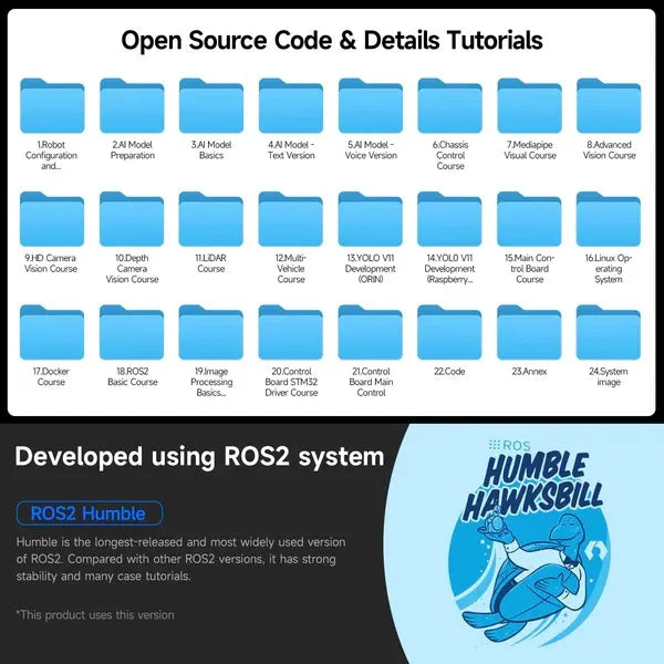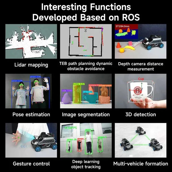- Optimized Performance: Features high-torque metal 520 motors, a dedicated ROS expansion board, and a high-capacity lithium battery, providing powerful, sustained motion and precise 3D world perception.
