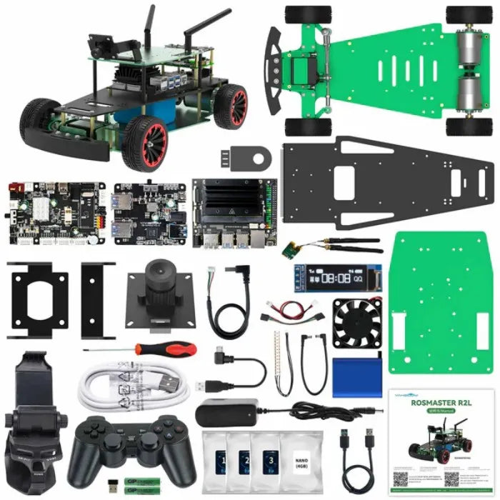 ROSMASTER R2L is an advanced autonomous driving robot with an Ackermann steering system for superior maneuverability, compatible with Jetson NANO and built on ROS and Ubuntu for robust development; it features a 2MP HD camera and integrated recognition algorithms to enable model training, autopilot, object recognition, and tag tracking, and offers versatile control via mobile app or handheld controller, plus 80 comprehensive courses with Chinese and English subtitles to accelerate learning in autopilot model training and ROS usage, making it the ultimate solution for both beginners and experienced developers in autonomous robotics.