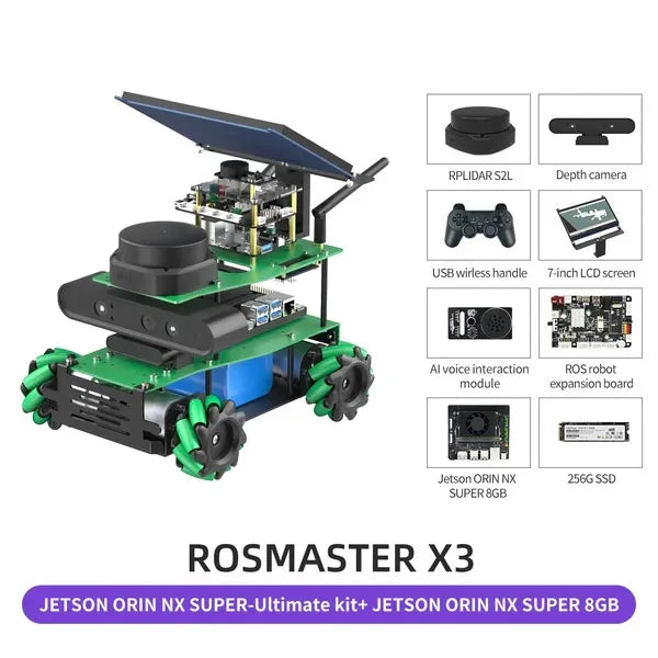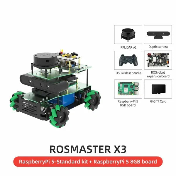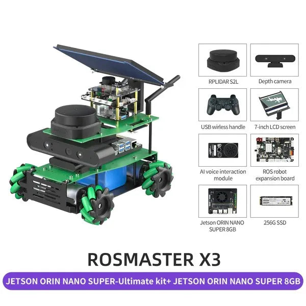 Discover the next generation of robotics education with ROSMASTER X3, an intelligent mobile platform designed for advanced learning in autonomous systems and artificial intelligence. Compatible with leading computing modules including Jetson NANO 4GB, Jetson Orin NANO SUPER, Jetson Orin NX SUPER, and Raspberry Pi 5, this robot delivers professional capabilities for academic research, skill development, and innovation projects.